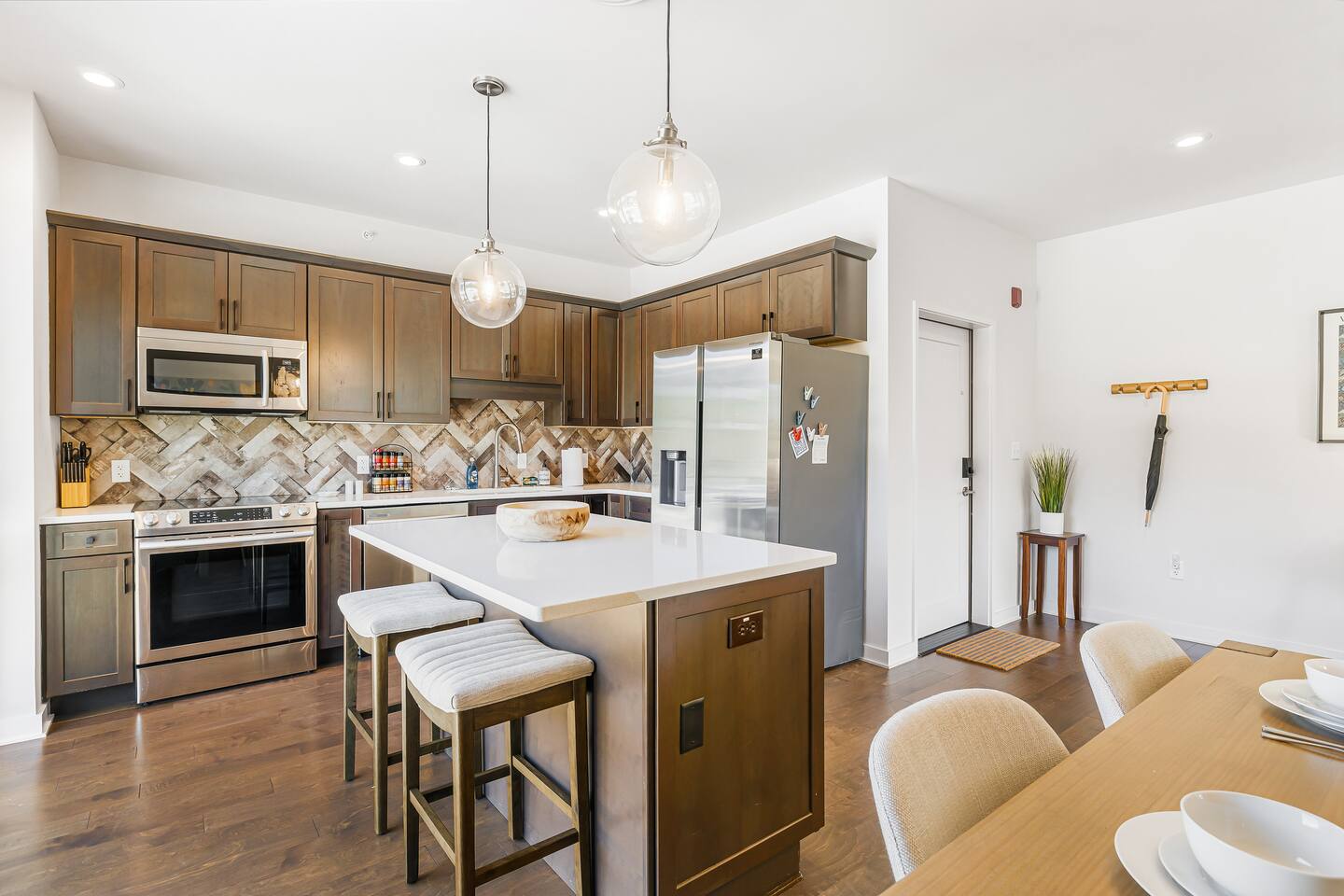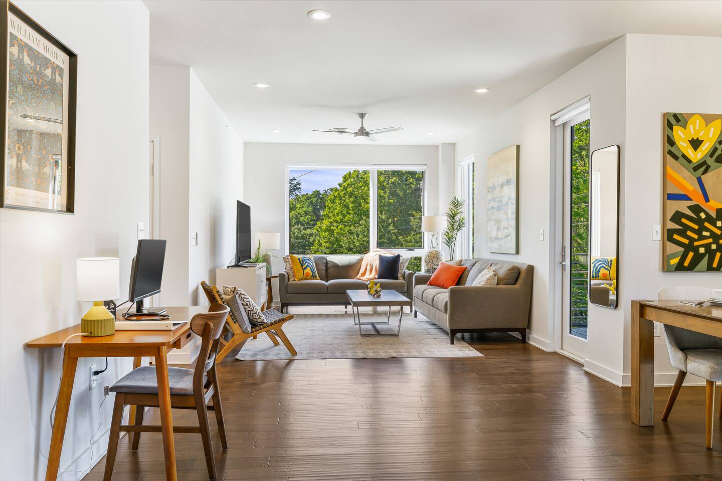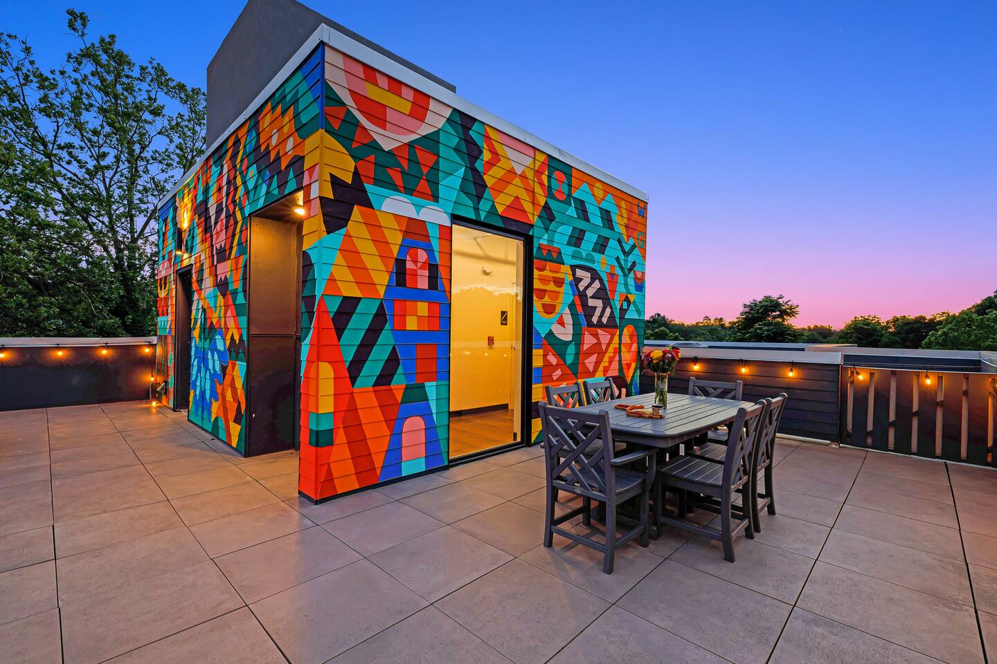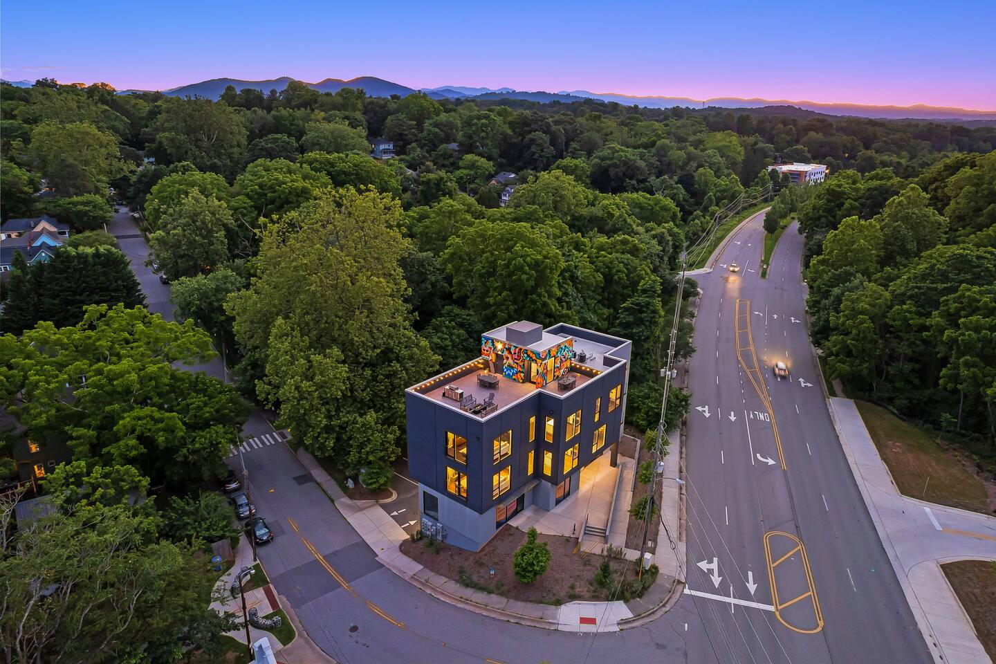 Welcome to the Finch Suite at @PerchAVL! Ideal for families and friends; comfort and artistry collide in this newly constructed loft within walking distance of downtown Asheville, NC. At The Perch, Asheville’s famous murals don’t stop on the street—your suite is packed with pops of color and around the property you’ll see hand-painted murals and paintings from Wyatt Grant. Warm Evenings can be spent on the rooftop deck boasting city views, a firepit, gas grills, and ample seating for cookouts.