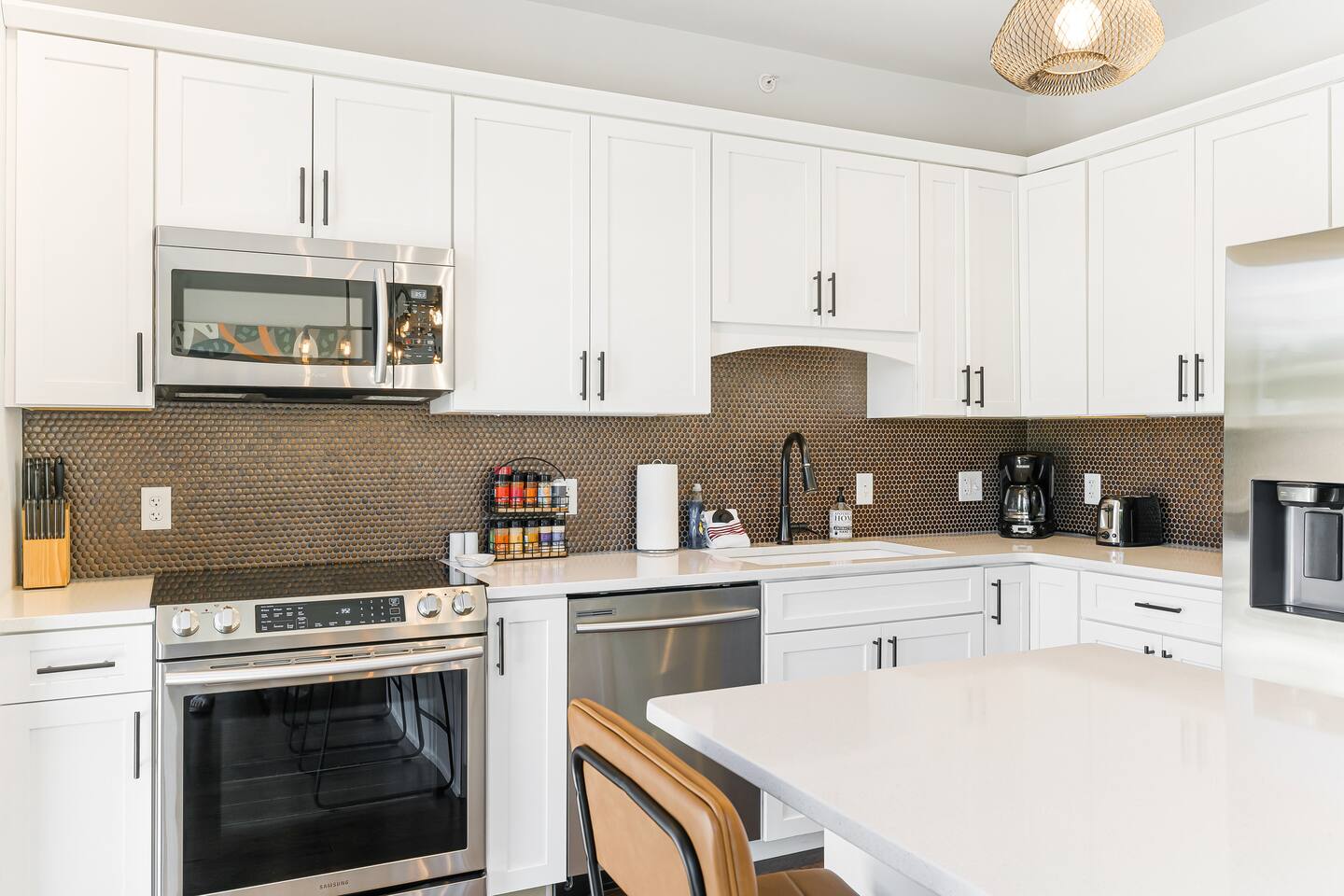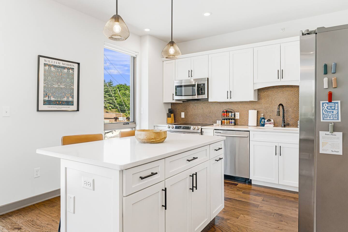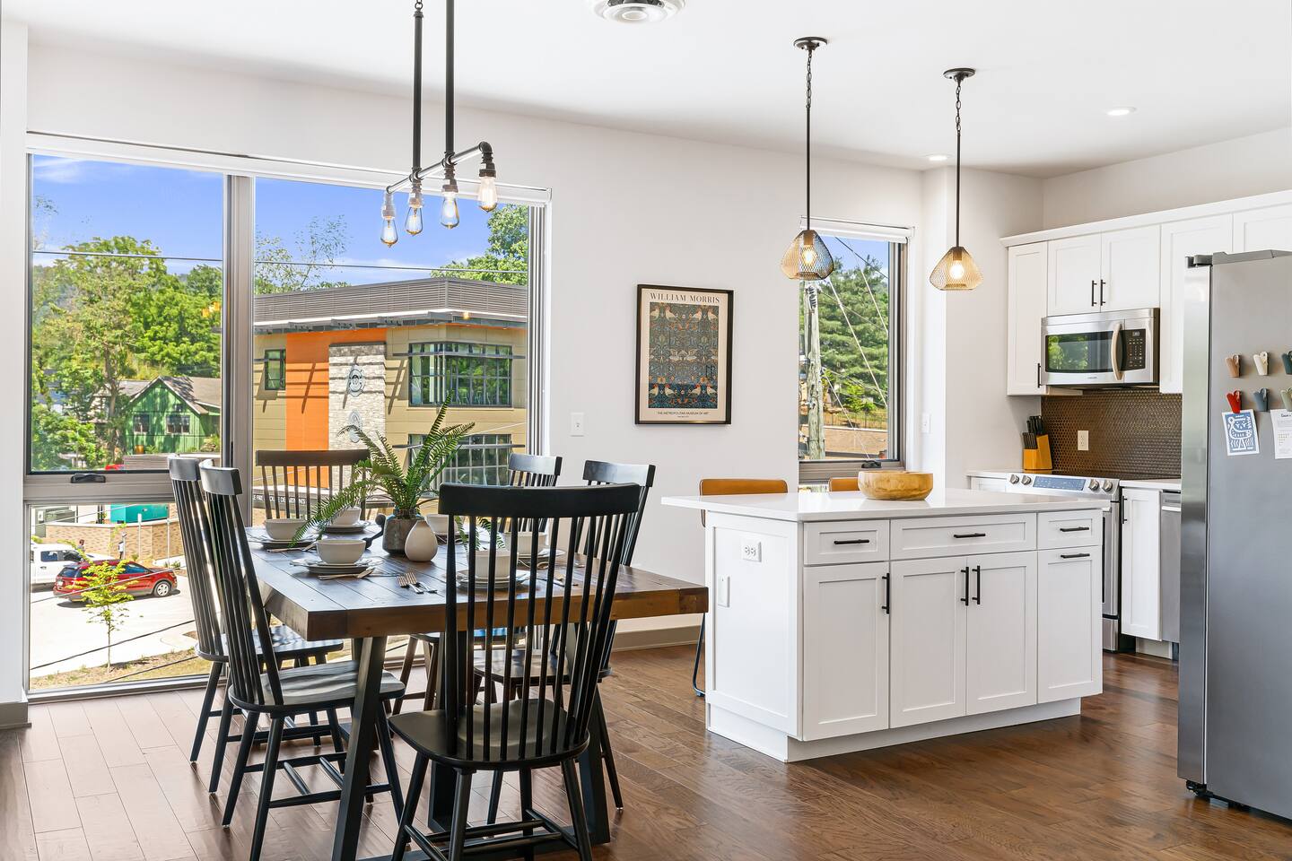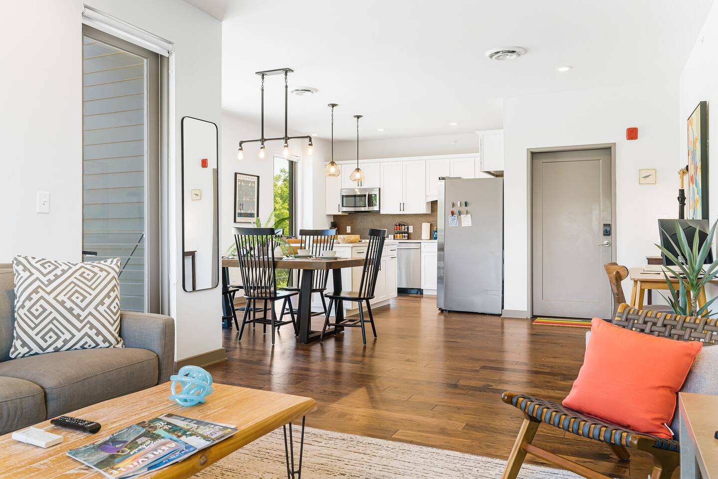Welcome to the Kingfisher Suite at @PerchAVL! Ideal for families and friends; style and location collide in this newly constructed loft within walking distance of downtown Asheville, NC. At The Perch, Asheville’s famous murals don’t stop on the street—your suite is packed with pops of color and around the property you’ll see hand-painted murals and art from Wyatt Grant. Warm Evenings can be spent on the rooftop deck boasting city views, a firepit, gas grills, and ample seating for cookouts.
