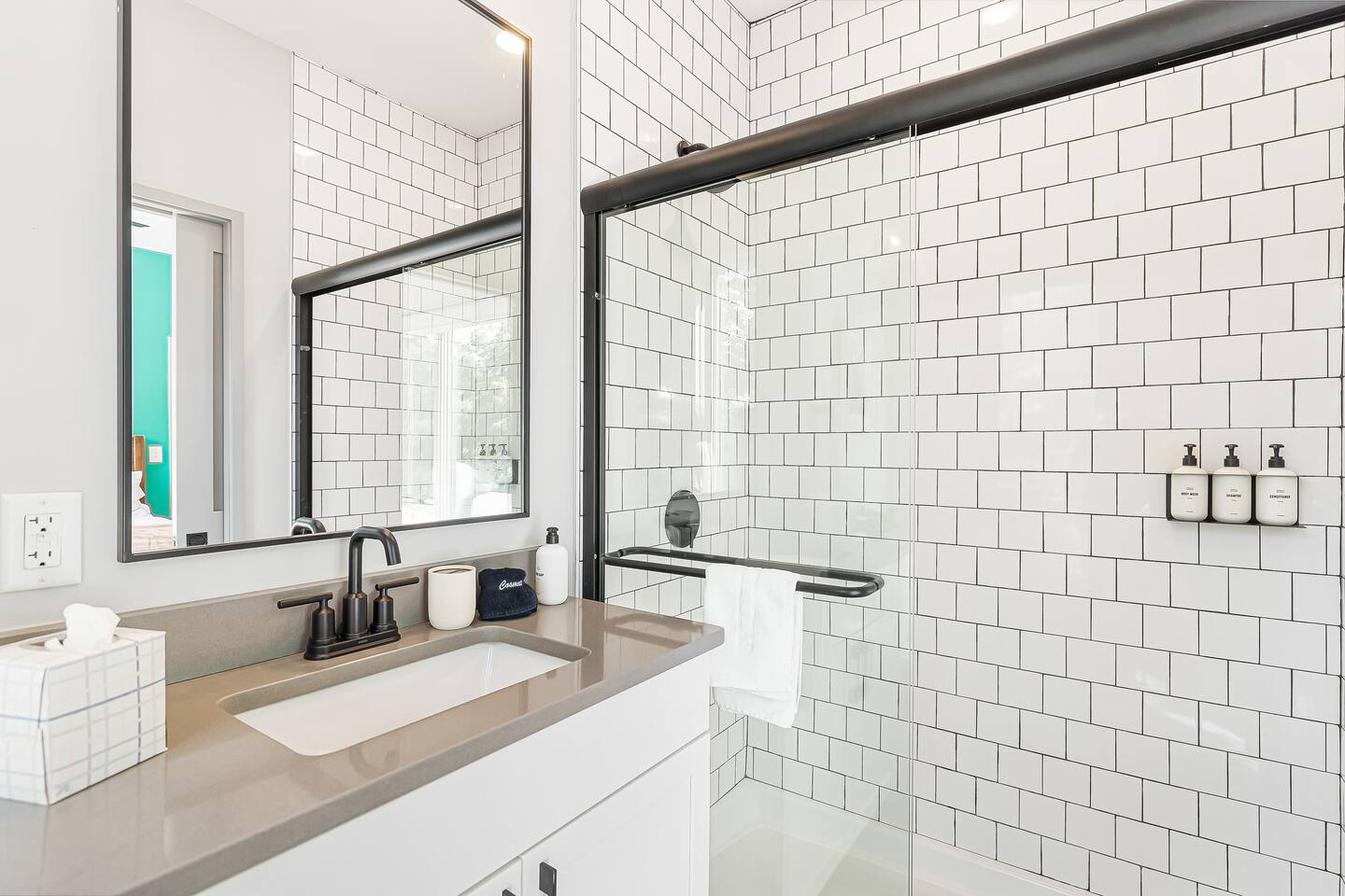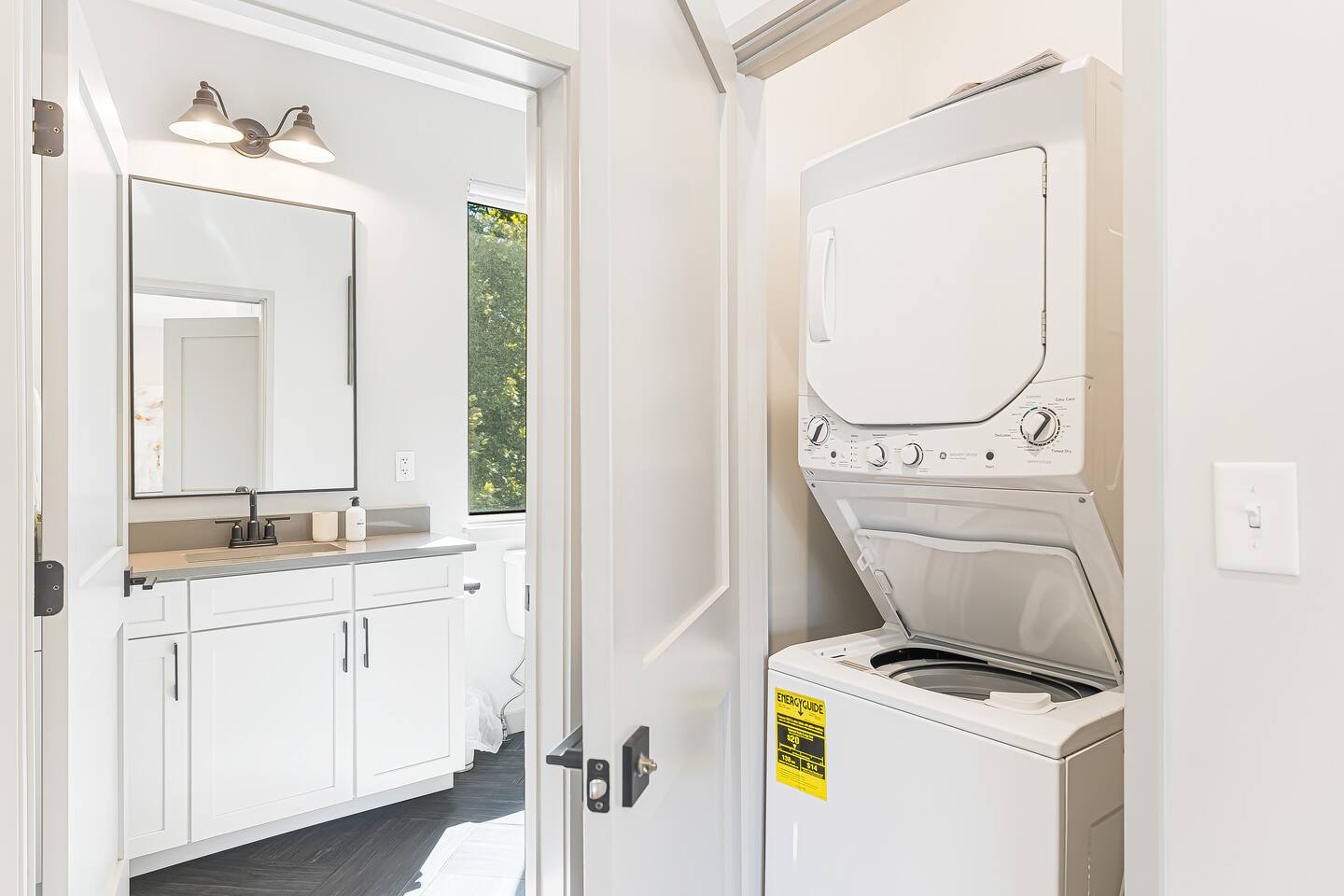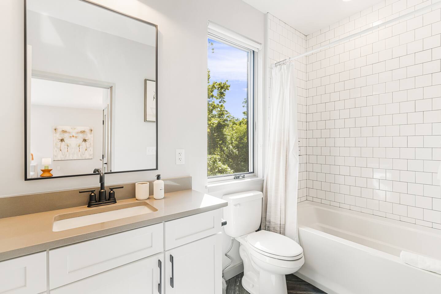 The Perch is located steps away from a paved 3.8-mile walking path, the Reed Creek Greenway, a quiet trail surrounded by trees and natural flora. The Greenway spans from near downtown through UNC Asheville’s campus, ending in Weaver Park. Tucked to the side of the trail near campus, you’ll find the entrance to the Asheville Botanical Gardens, where nature trails run alongside Reed Creek. At just over 1,000 square feet on the second floor, the Sparrow Suite’s (#210) spacious open floorplan is flooded with natural light from our floor-to-ceiling windows. With king beds in both bedrooms and two full baths, we can luxuriously accommodate 4 guests—you will feel pampered! The comfortable living room sectional faces a flat-screen TV—bring your streaming logins, kick back, and relax. If you’re looking for some family activities, in the console under the TV you’ll find a variety of great family-friendly games, including Wingspan, Skull, Uno, and a deck of playing cards. The kitchen is fully stocked with pots, pans, silverware, plates, and all the other items you need to make a home-cooked meal. Our spice rack covers all the bases! We have special plates and cups for the kiddos, and you’ll find a separate set of plastic dishes and grill tools so you can fire up the rooftop grill for a summer cookout! We also provide a coffee and tea cabinet with ground coffee, a coffee maker, black and herbal teas, and a selection of flavored creamers. We’ve got you covered on amenities! Each bathroom is ready for all your needs with a blow dryer, towels, makeup washcloths, soaps and shower supplies. You’ll also find extra amenities like an in-suite-washer-dryer, pack-and-play, and iron/ironing board. Don’t miss the shared rooftop deck, one of the highlights. As you drive up to the property, you can’t miss our stunningly eye-catching rooftop mural by Wyatt Grant. Enjoy it up close and personal while you sit around the firepit, “perched” high above the neighborhood (we couldn’t resist!) We are a fully accessible property, so you can access your suite seamlessly via elevator from the ground floor up to your suite. We offer parking on-site, which is shared with the retail space on our ground floor. Self-check in is easy with our keyless lock systems. We’ll message you ahead of time with your unique lock code, changed between guests every time for your security.