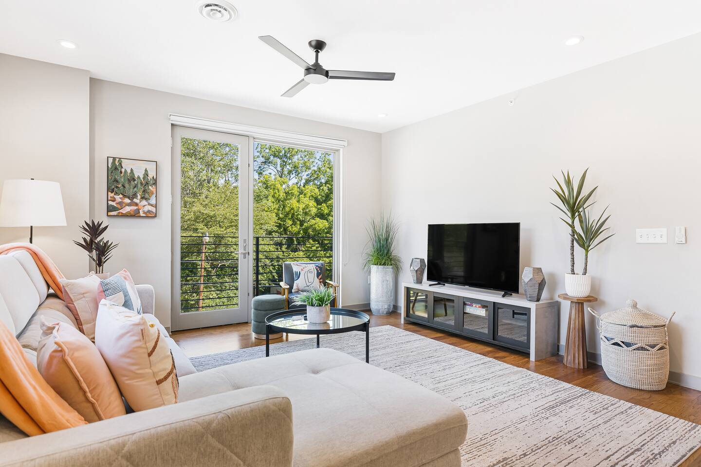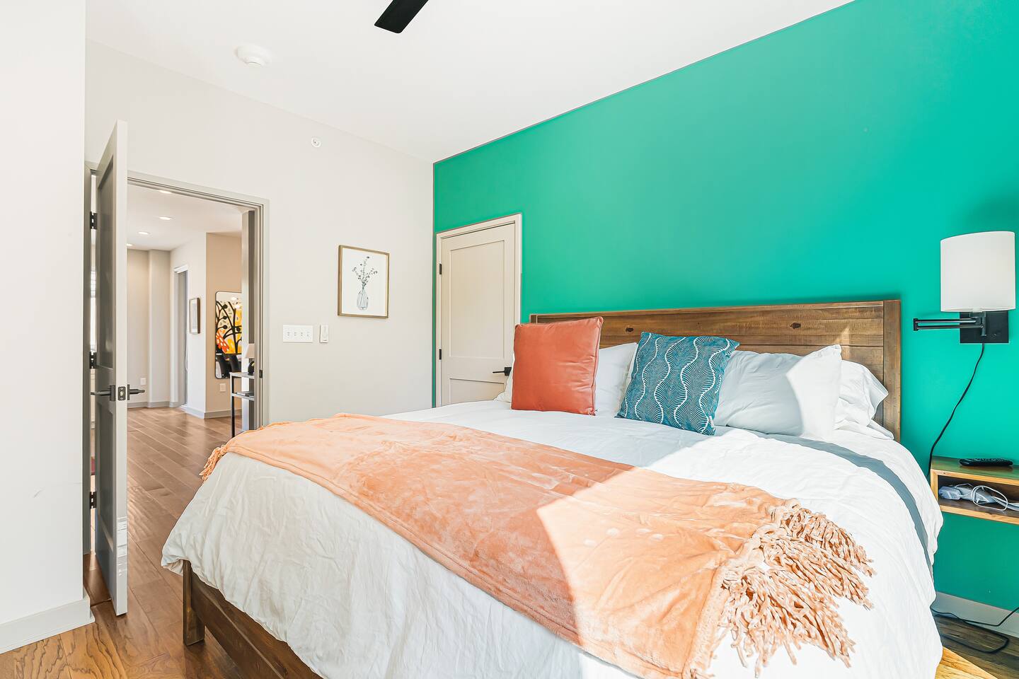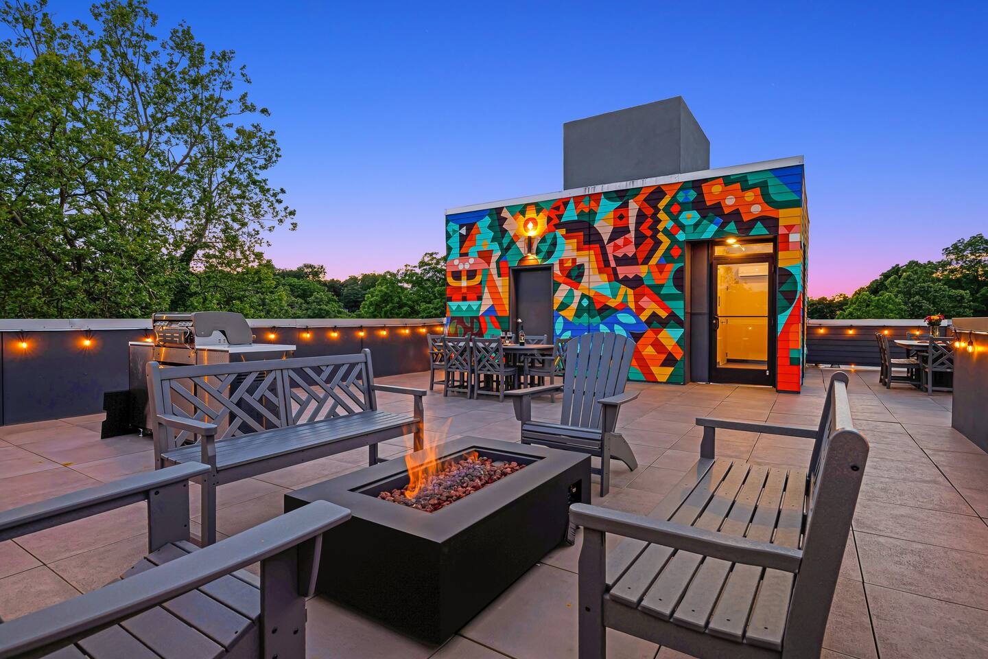 Welcome to the Sparrow Suite at @PerchAVL! Ideal for families and friends; comfort and artistry collide in this newly constructed loft within walking distance of downtown Asheville, NC. At The Perch, Asheville’s famous murals don’t stop on the street—your suite is packed with pops of color and around the property you’ll see hand-painted murals and paintings from Wyatt Grant. Warm Evenings can be spent on the rooftop deck boasting city views, a firepit, gas grills, and ample seating for cookouts.